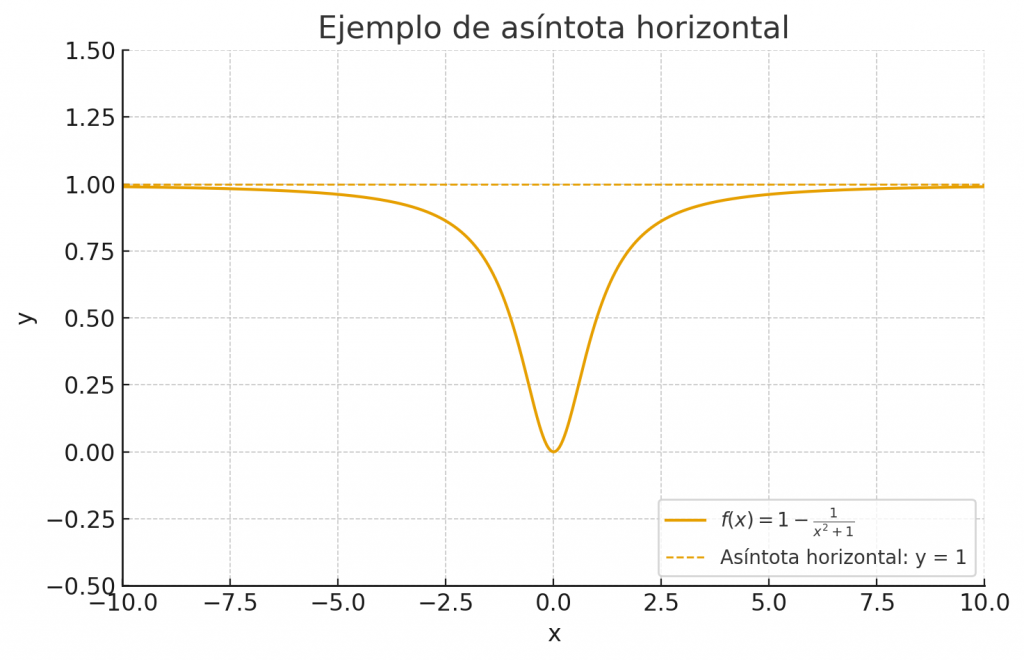 En matemáticas, una asíntota es una línea a la que una función se acerca pero nunca llega a tocar. Como ejemplo, veamos el comportamiento de la siguiente función:
